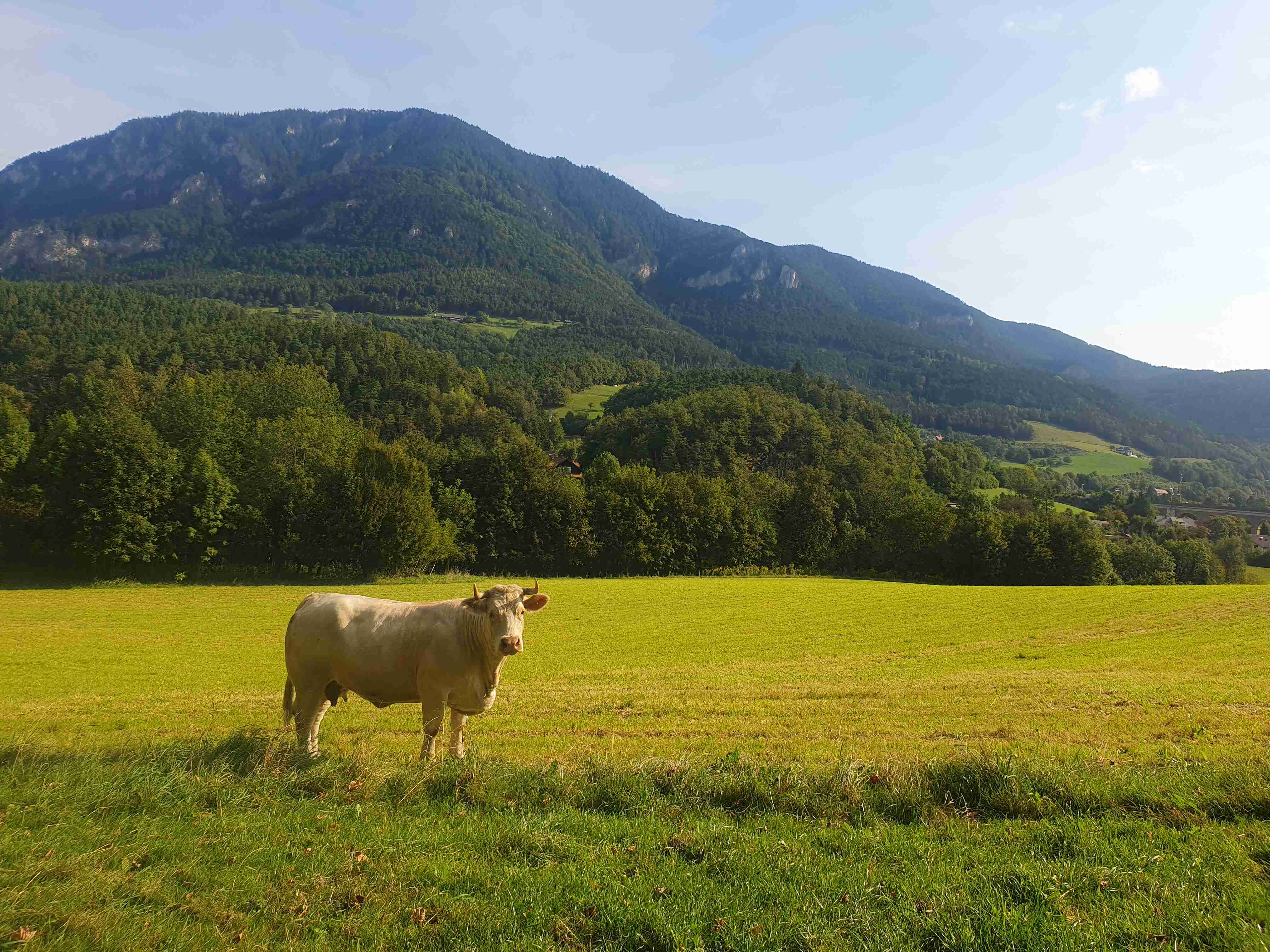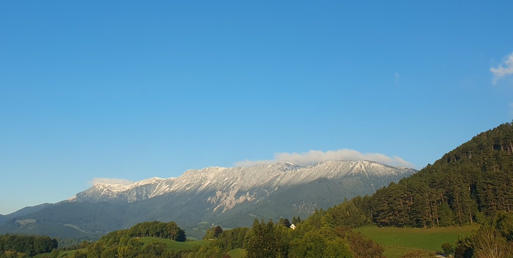 Unser Hof steht in Payerbach am sonnenseitigen Hang mit Blick auf die Rax. Die Sonne sorgt bei uns für trockene Wiesen, wodurch zum Einen ein geringer Parasitendruck herrscht und zum Anderen unsere Tiere oft noch in den Winter rein auf trockenen Weiden stehen können. Bei uns gibt es viel Wald. Auch auf unseren Weiden stehen Bäume, die den Tieren Schatten spenden.